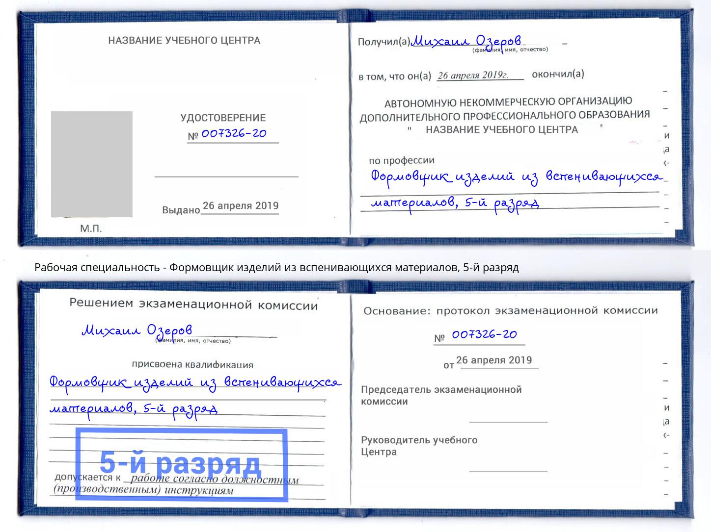 Корочка "Формовщик изделий из вспенивающихся материалов